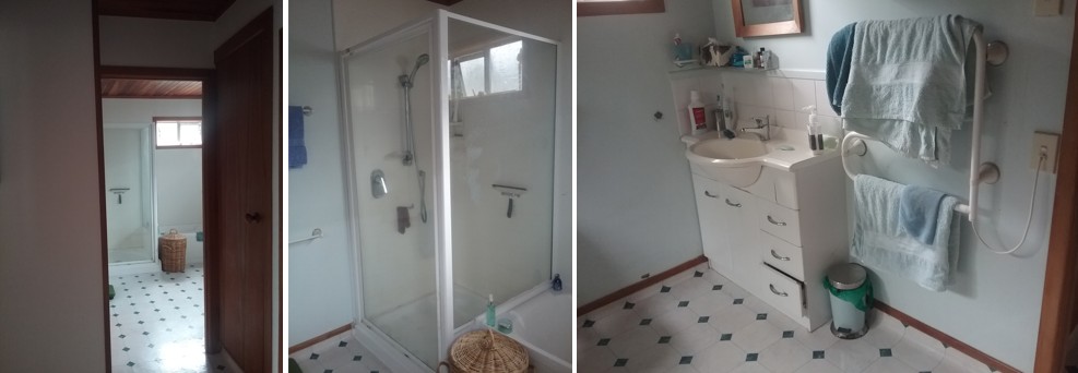 Below are before shots of the main bathroom shower, bath, toilet and vanity.
